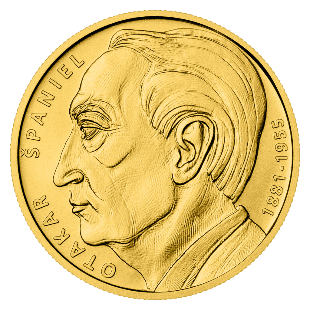 Na druhé straně je portrét návrháře, nápis OTAKAR ŠPANIEL 1881 - 1955.