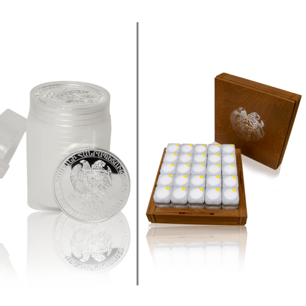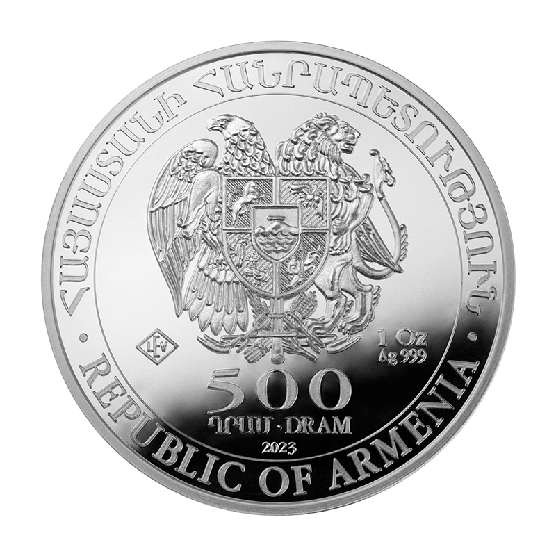 Tato zlatá mince je vyrobena z ryzího stříbra (999/1000) a je v Arménii zákonným platidlem.