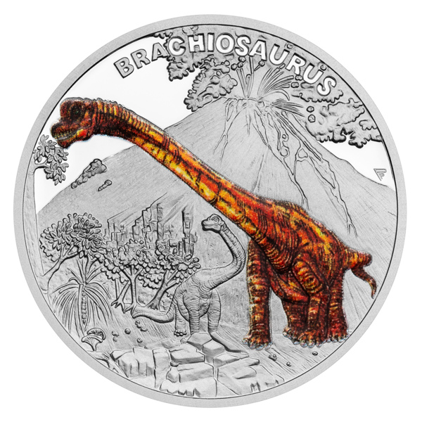 Stříbrná mince Pravěký svět - Brachiosaurus proof