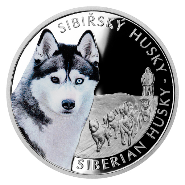 Poslední stříbrná mince České mincovny z dvanáctidílného cyklu Psí plemena je věnována sibiřskému huskymu.