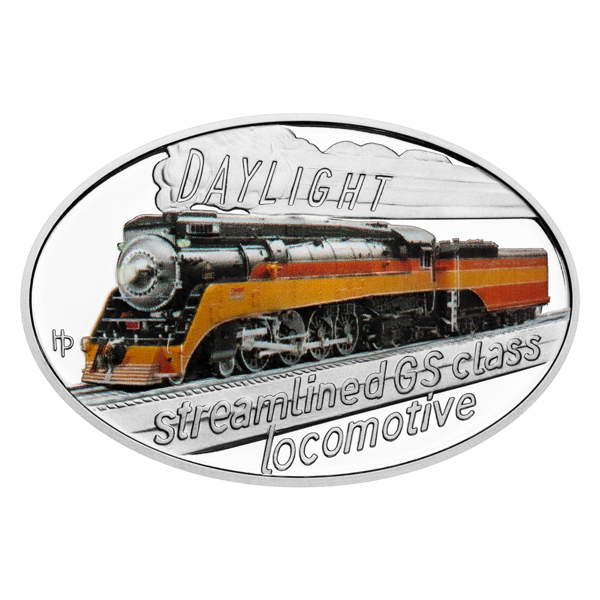 Reverzní strana mince, která je dílem medailéra Mgr. Petra Horáka, předkládá lokomotivu, jejíž realistický vzhled s charakteristickými barvami byl vytvořen s pomocí technologie kolorování. Do kouře, který se line z komína, je zakomponován název DAYLIGHT. Anglický text STREAMLINED GS CLASS LOCOMOTIVE pak připomíná, že šlo o proudnicovou lokomotivu řady GS. Na averzní straně mince, která je společná celému cyklu, najdete železniční koleje a tunel. Protože mince České mincovny vycházejí v zahraniční licenci ostrova Niue, nesou na averzu ještě jeho státní znak, nominální hodnotu 1 DOLLAR (NZD) a rok emise 2025.