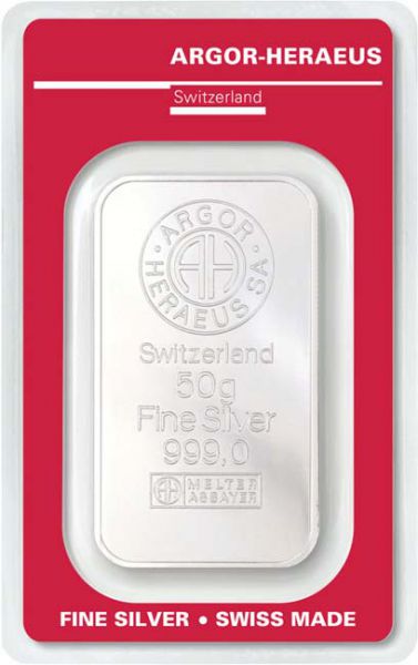 Stříbrný slitek 50 g Argor-Heraeus