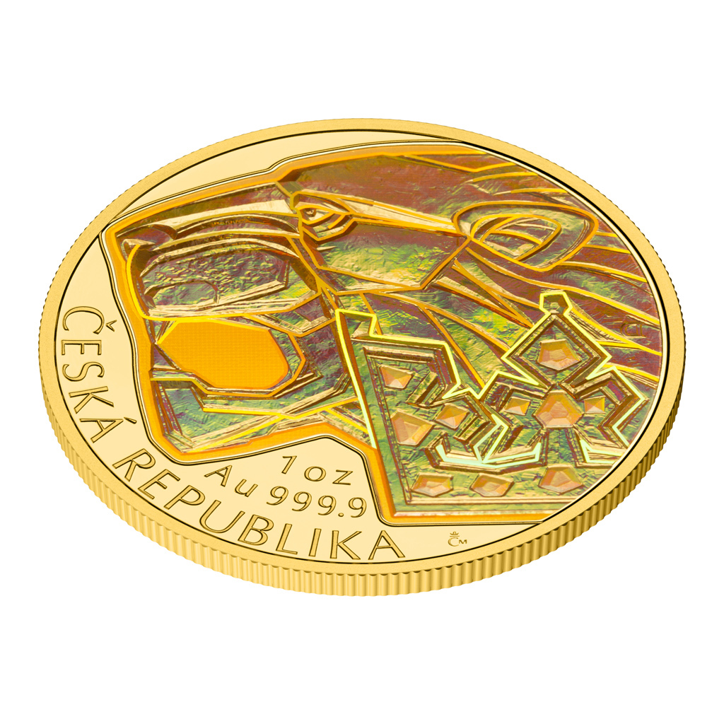 Zlatá 1oz investiční mince Český lev 2026 s hologramem proof