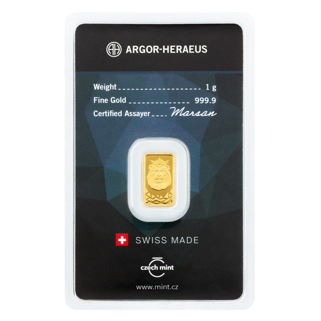 Zlatá investiční cihla 1 g - Argor Heraeus/ČM - Český lev