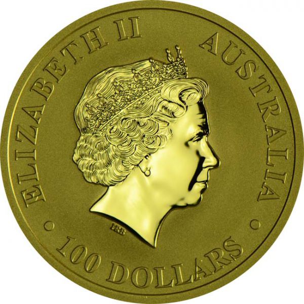 Motivem přední strany mince je pak tradičně vyobrazení královny Alžběty II., nápis ELIZABETH II AUSTRALIA a nominální hodnota 100 DOLLARS.
