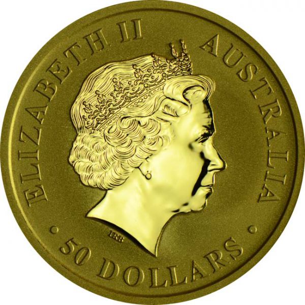 Motivem přední strany mince je pak tradičně vyobrazení královny Alžběty II., nápis ELIZABETH II AUSTRALIA a nominální hodnota 50 DOLLARS.