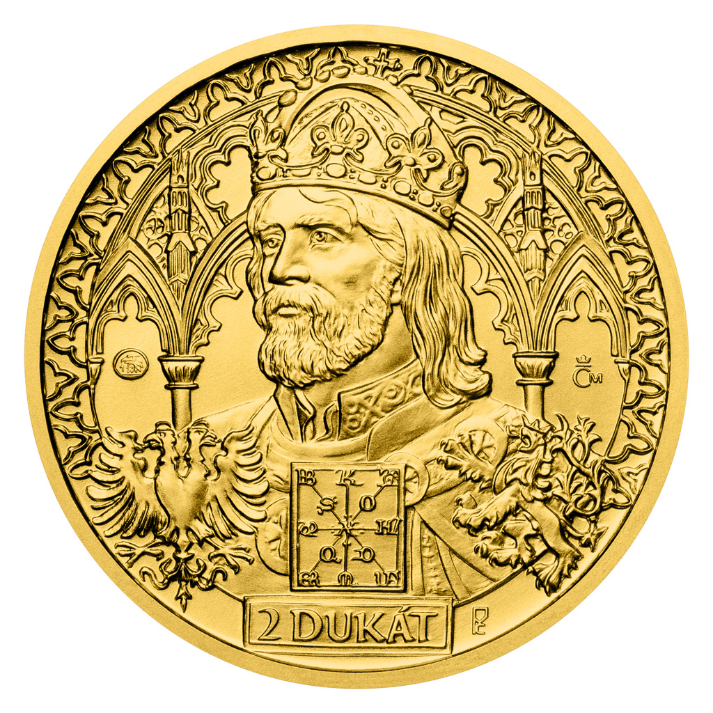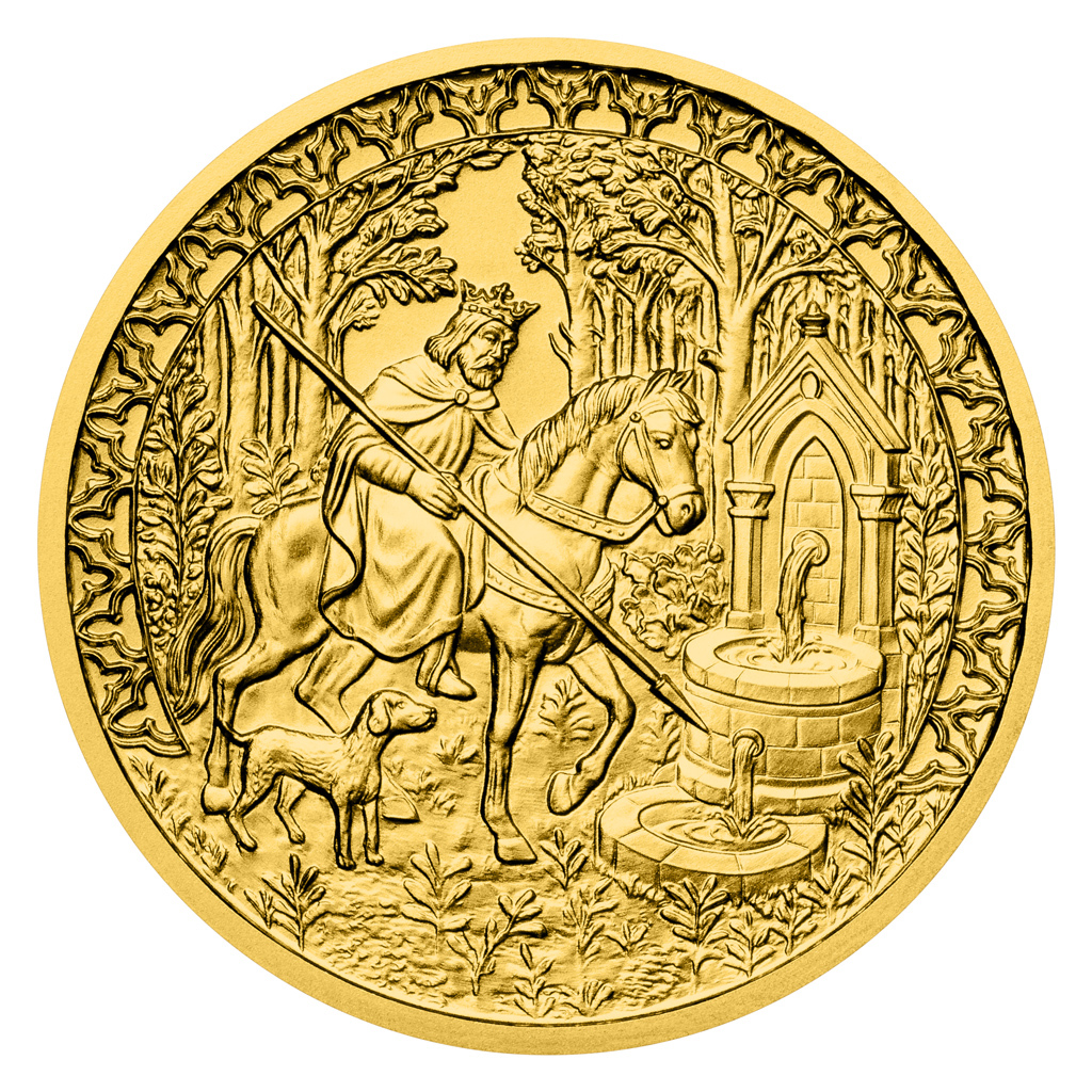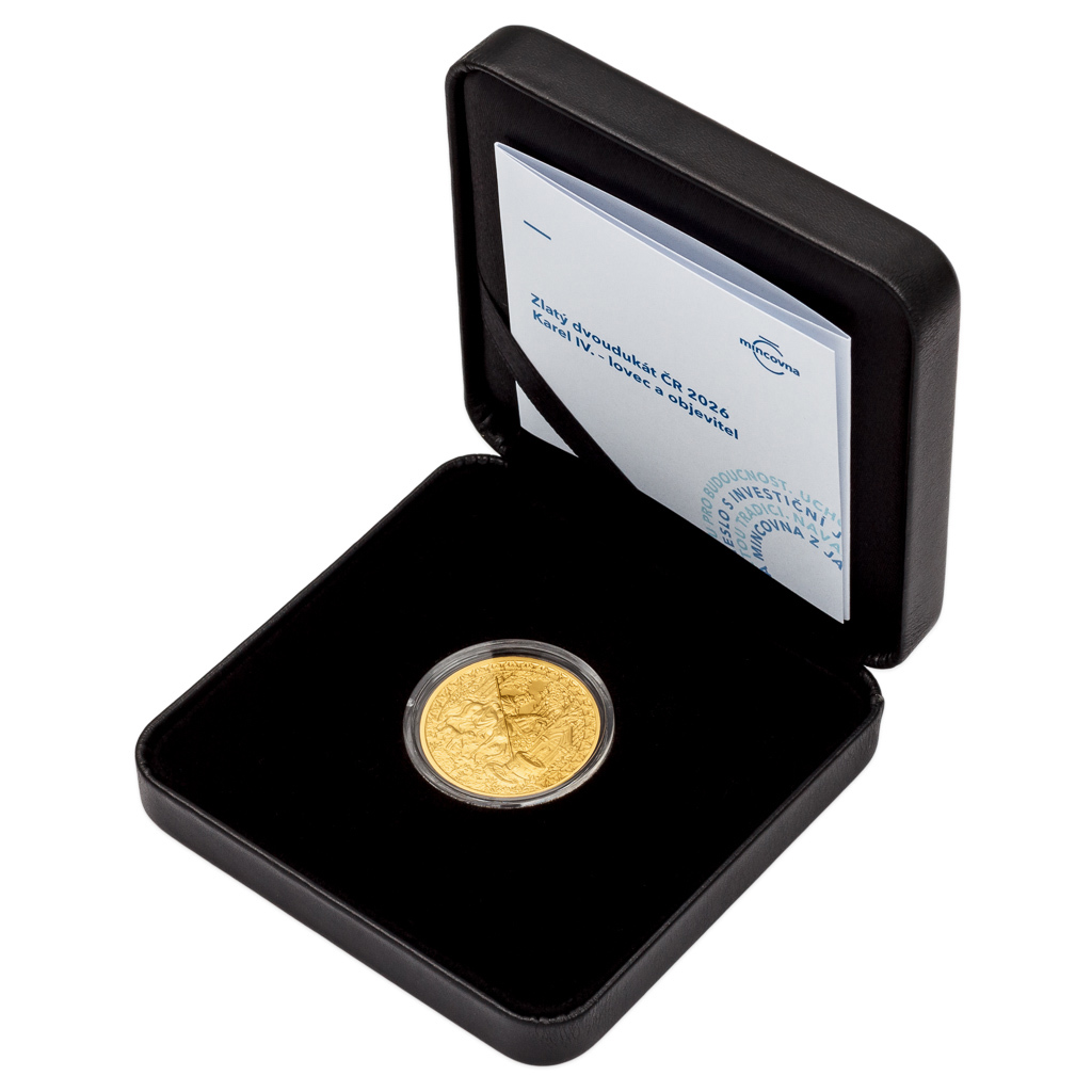 V roce 2026 vzdává tradiční Dukátová řada České mincovny hold Karlu IV. Otec vlasti se v reliéfu zlatého dvoudukátu představuje jako milovník lovu.