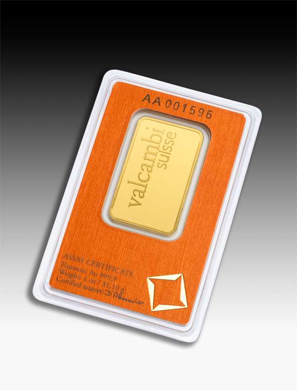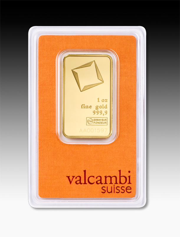 Zlatý investiční slitek švýcarského producenta Valcambi.